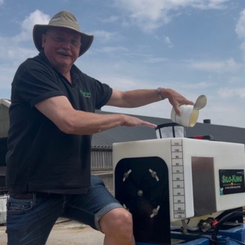 Haal maximaal rendement uit uw ruwvoer!   Meer liters melk uit dezelfde kilo ruwvoer Silo-King WS is een innovatieve wateroplosbare kuilverbeteraar die drogestofverlies beperkt en de voerefficiëntie verhoogt. Met Silo-King haalt u direct rendement: geen inkuilverlies betere verteerbaarheid langere houdbaarheid minder CO2 uitstoot meer liters melk uit elke kilo ruwvoer. Silo-King is in Amerika al 25 jaar het nummer één inkuilmiddel.