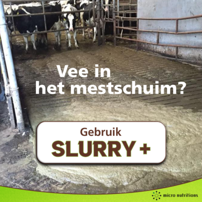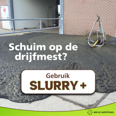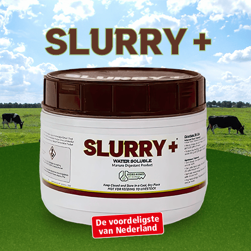 Slurry+ is een innovatieve toevoeging die drijfmest opslag en uitrijden verbetert en makkelijker en goedkoper maakt. Slurry+ zet vaste meststoffen in de drijfmest om in vloeibare, voedingsrijke meststoffen. Met als resultaat: geen schuim en korst in de gierput of silotank en een lagere methaan- en ammoniakemissie in de stal. Slurry+ drijfmestverbeteraar zorgt dat waardevolle stikstof naar de bodem gaat in plaats van in de lucht. Hierdoor verbetert het bodemleven. (wacht niet tot u schuim vindt, maar begin vroeg in het opslagseizoen, September)