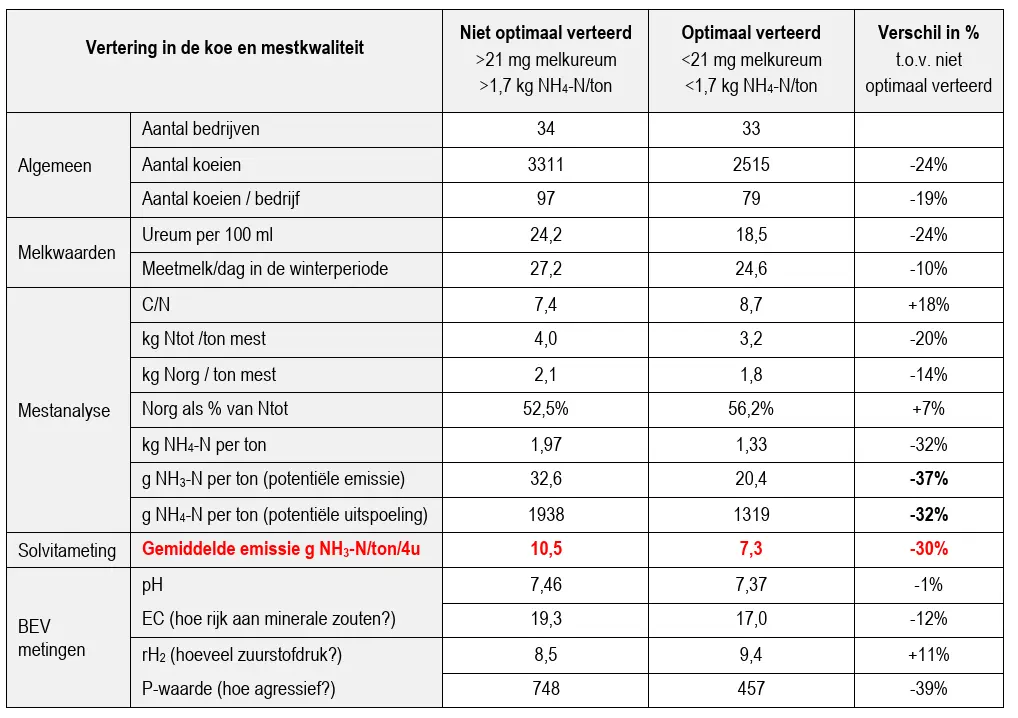 - de totale stikstof in beide putten met 0,5 kg/ton gedaald